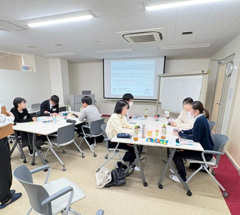 学生のみなさんに採用担当者の視点で考えていただき、意見交換を行いました。