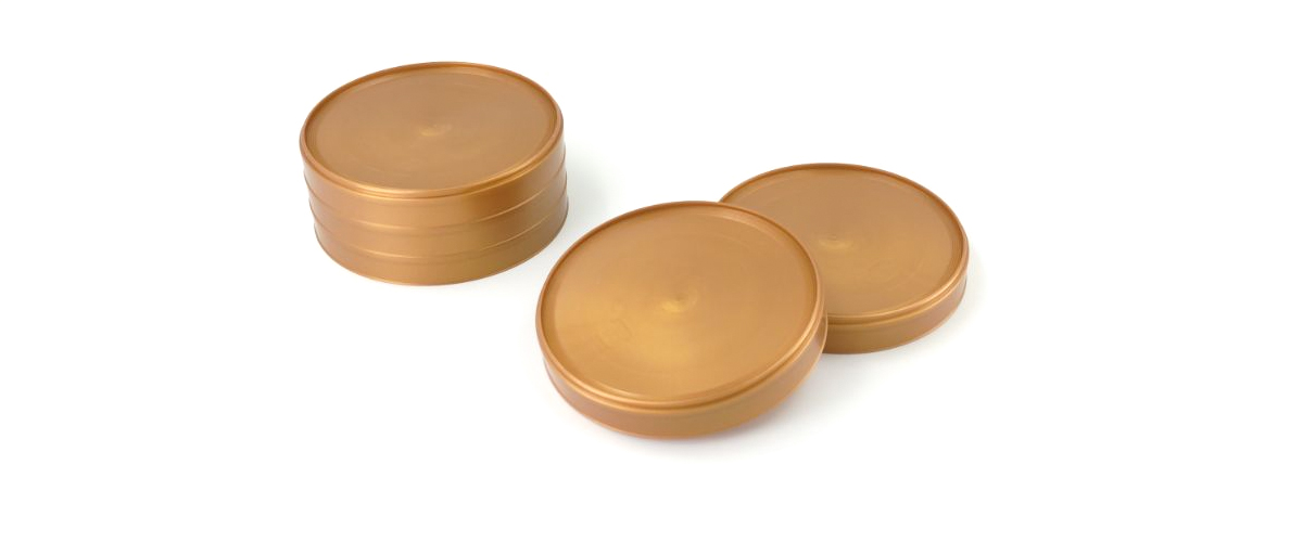 バイオプラを25%使用した薄肉フタ型の成形品です。一部をバイオマスプラスチックに置き換え、石油由来プラの使用量を低減出来ます(25%減少)