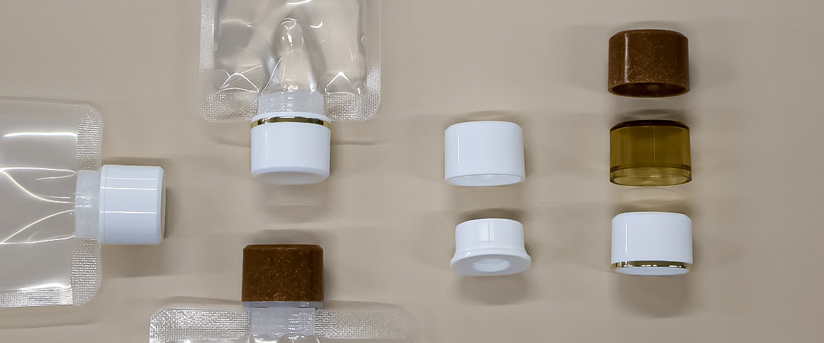 このミニパウチ向けに口径Φ5、Φ8.7、Φ10などキャップ・ヒンジキャップの選択肢をご提供しています。