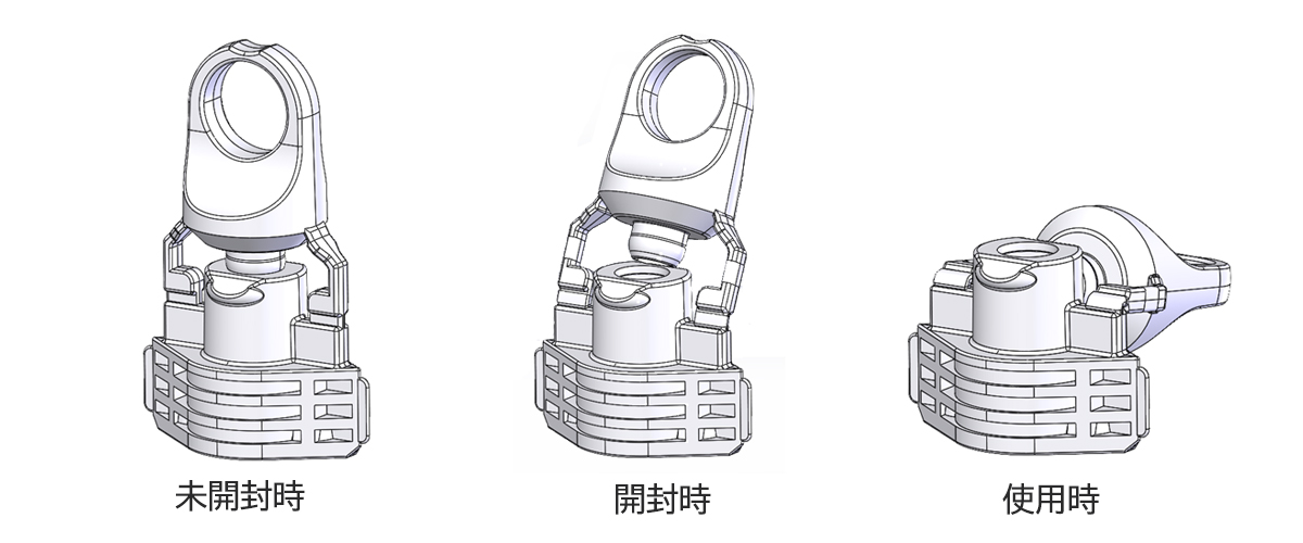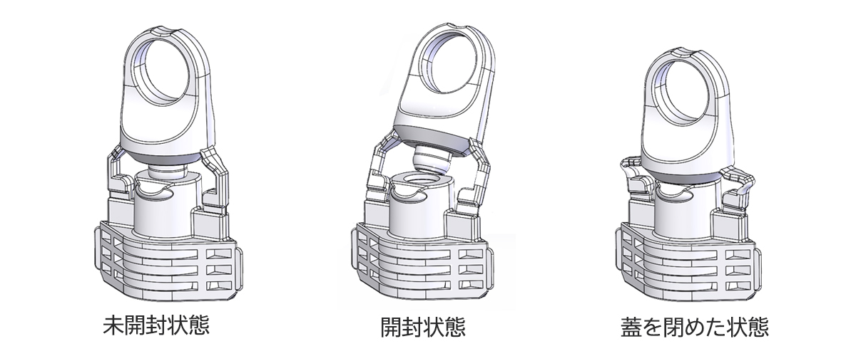 普段ご紹介するASスパウトシリーズとは形状が異なる『AS5改ざん防止キャップ一体型スパウト』ですが、実際に使用した場合は以下のような形で開閉を行います。