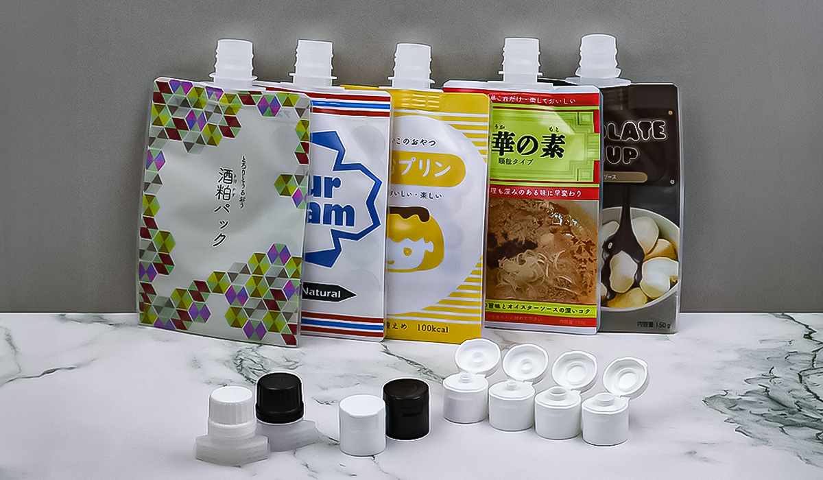 ASスパウトシリーズの特徴は、スパウトパウチ側・・・ではなくて、スパウトパウチをいろいろな用途で活用できるようにするためのラインアップの多さにあります。