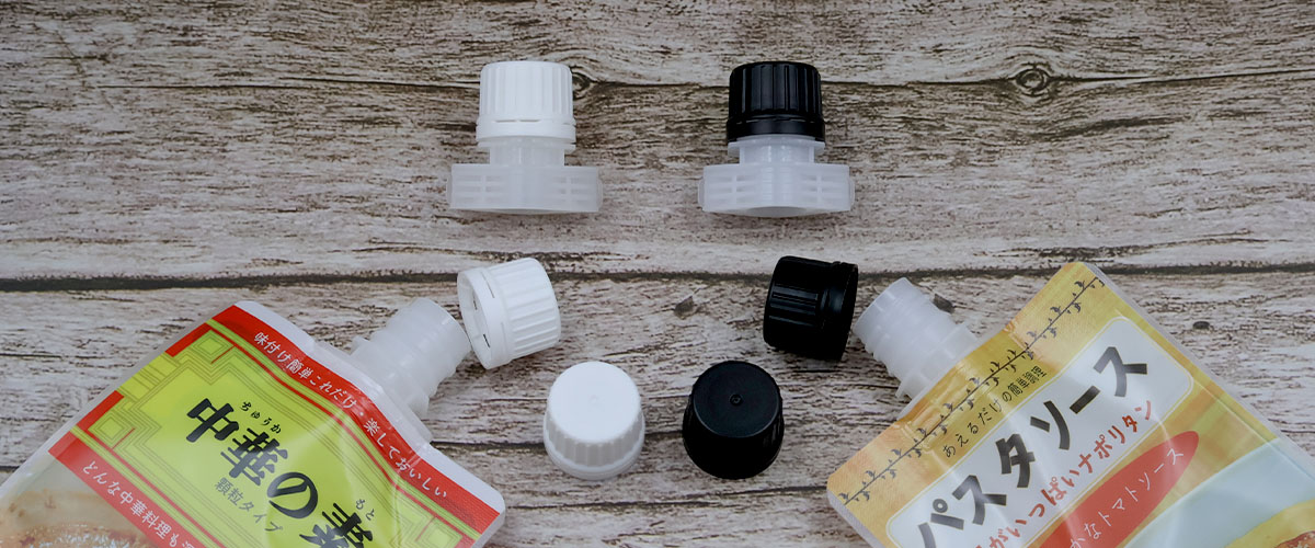 16mm口径のスパウトが溶着されたスパウトパウチは、いろいろな所で見かけます。