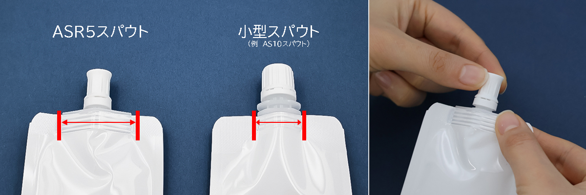 ※吊り下げて使用するφ5口径のスパウトパウチには『AS5改ざん防止機能付きキャップ一体型スパウト』があります。