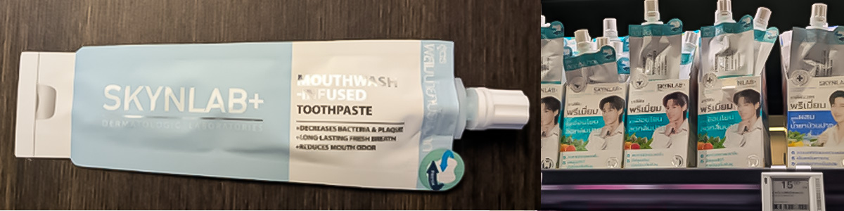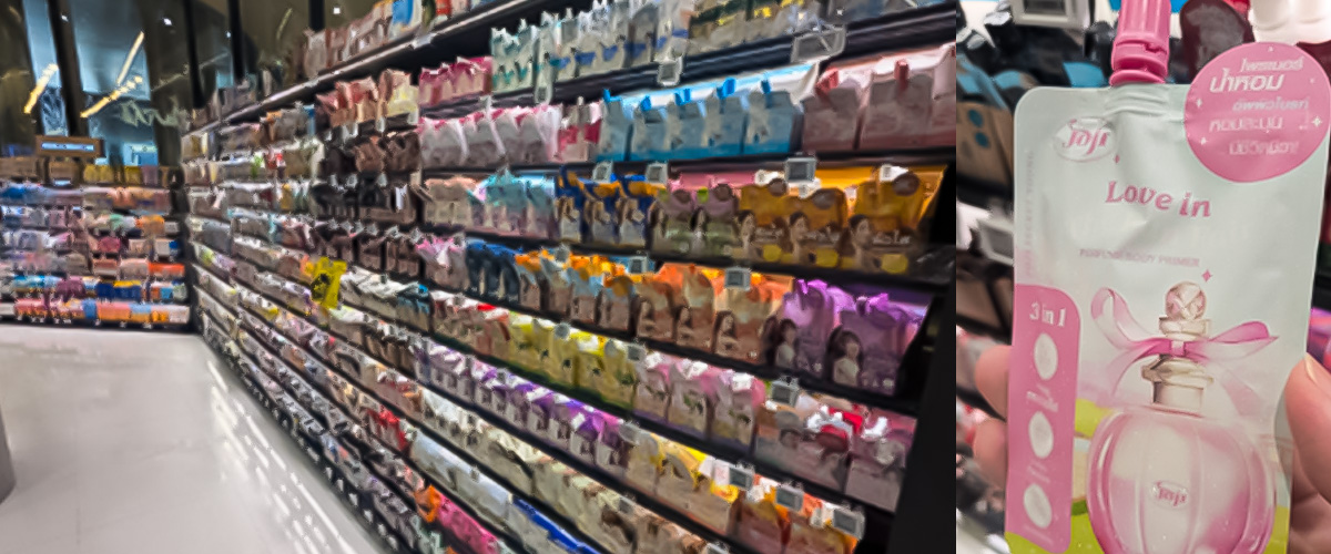 さらに、現地の生活を肌で感じるべく、地元のスーパーマーケット(BIG-C等)も巡ってみました。去年にも増して、コンパクトなスパウトパウチに入ったスキンケア商品の多さです。