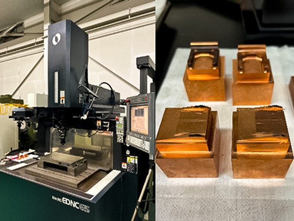 如果您需要加工中心无法加工的钢材或形状,或者您需要多个相同形状的零件,我们将使用放电加工机进行加工。